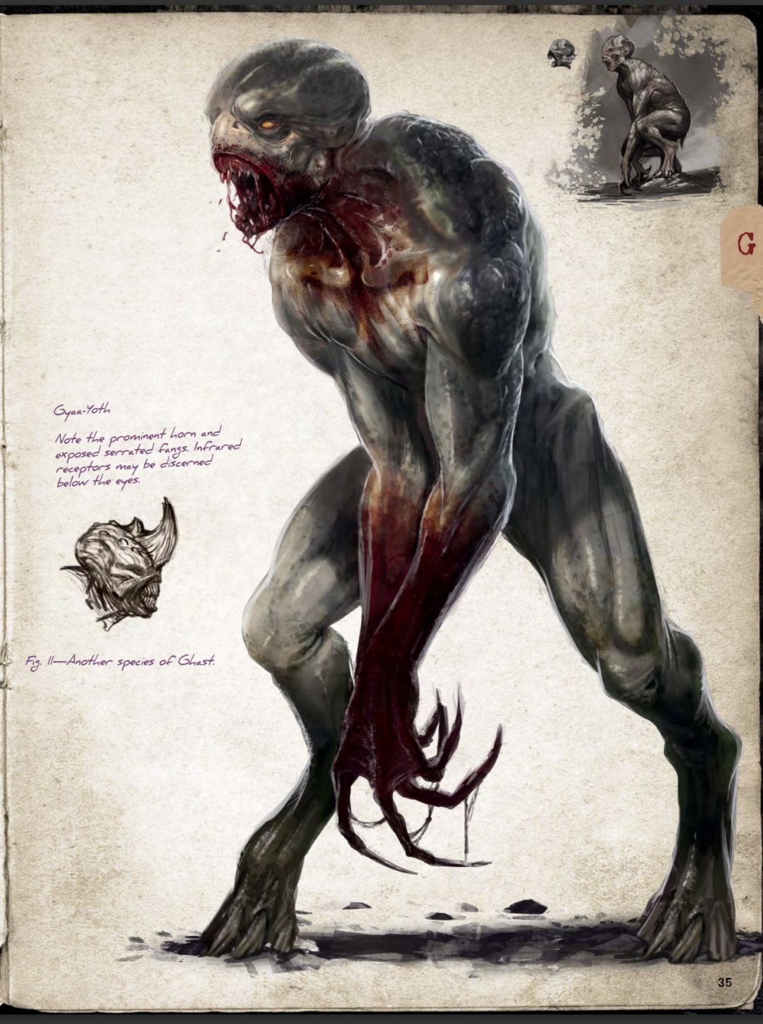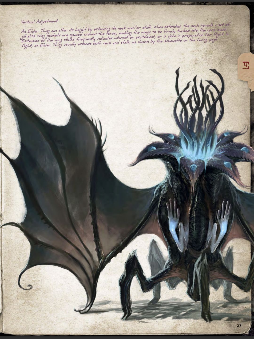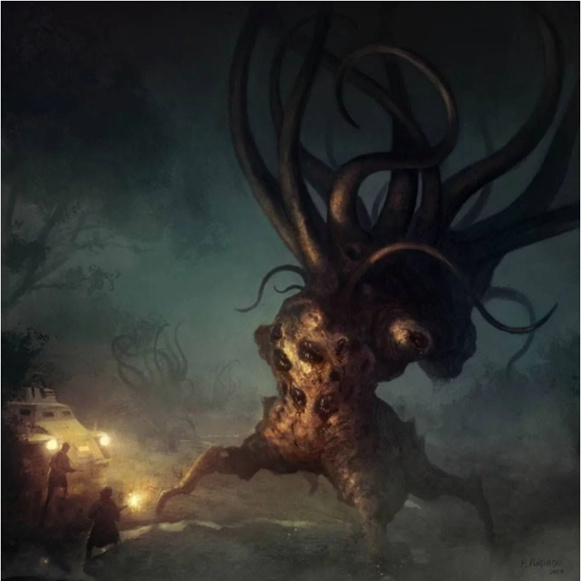 ● 暗夜獵手(The Haunter of the Dark):長有黑翼的巨大生物,面部最顯著的特徵是裂成三瓣的血紅獨眼,翅膀的邊緣是滴着強酸的卷鬚。這是一種異常危險和可怕的生物,不過能夠被強光所驅趕。