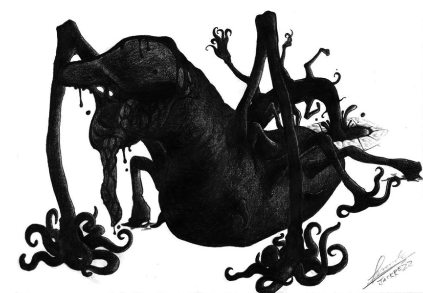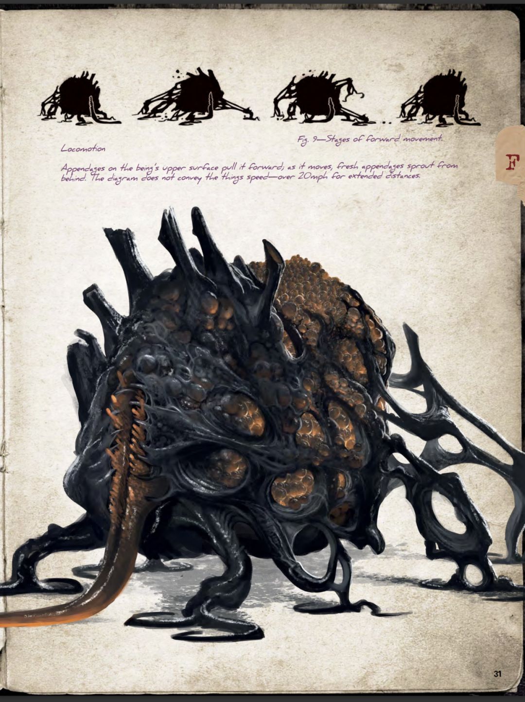 ● 莎布·尼古拉絲(Shub-Niggurath)散發着惡臭且擁有辨識度很高的嘴,阿撒託斯則沒有明顯可識別的身體部位。