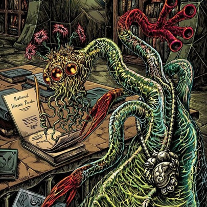 新發掘樣本竟然與原始傳說中的某些生物存在神祕的共通之處,這就不可避免地暗示着南極洲以外也可能有遠古生命體存在。戴爾和帕伯迪翻閱過《死靈之書》,也看見過克拉克·阿什頓·史密斯基於該文本所創作的猶如噩夢般的畫…我也一度癡迷於威爾瑪斯所談及的史前傳說中的存在——如克蘇魯邪神教團,等等。——《瘋狂山脈》