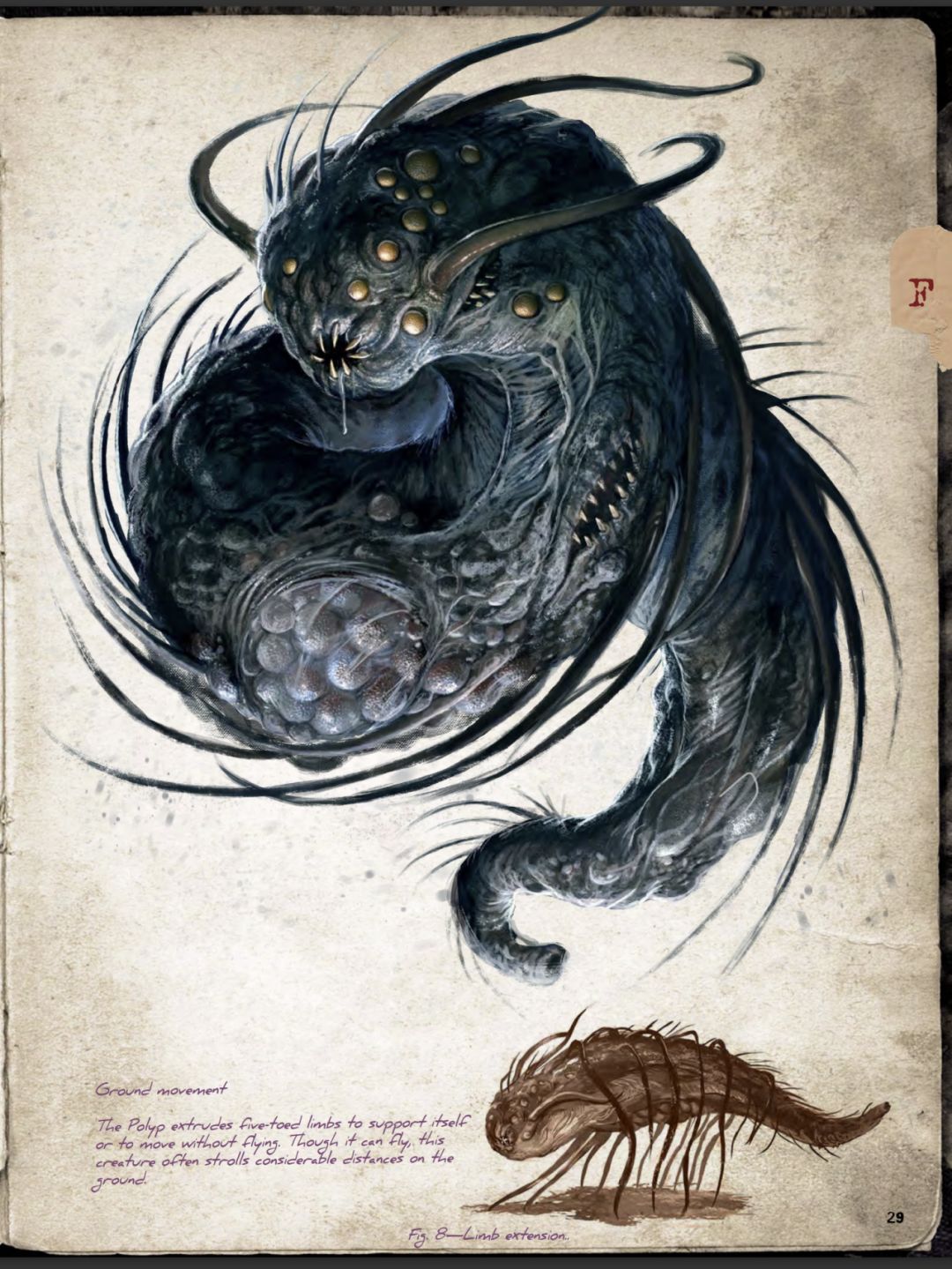 ● 猶格斯真菌(Fungi from Yuggoth)的頭是圓的,只有兩個翅膀,而且不可能在水下找到它們。
