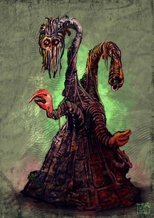 ● 外神僕役(Servitor of the Outer Gods)體型小的多且經常侍弄笛子;通常至少有一個僕役陪伴着阿撒託斯。