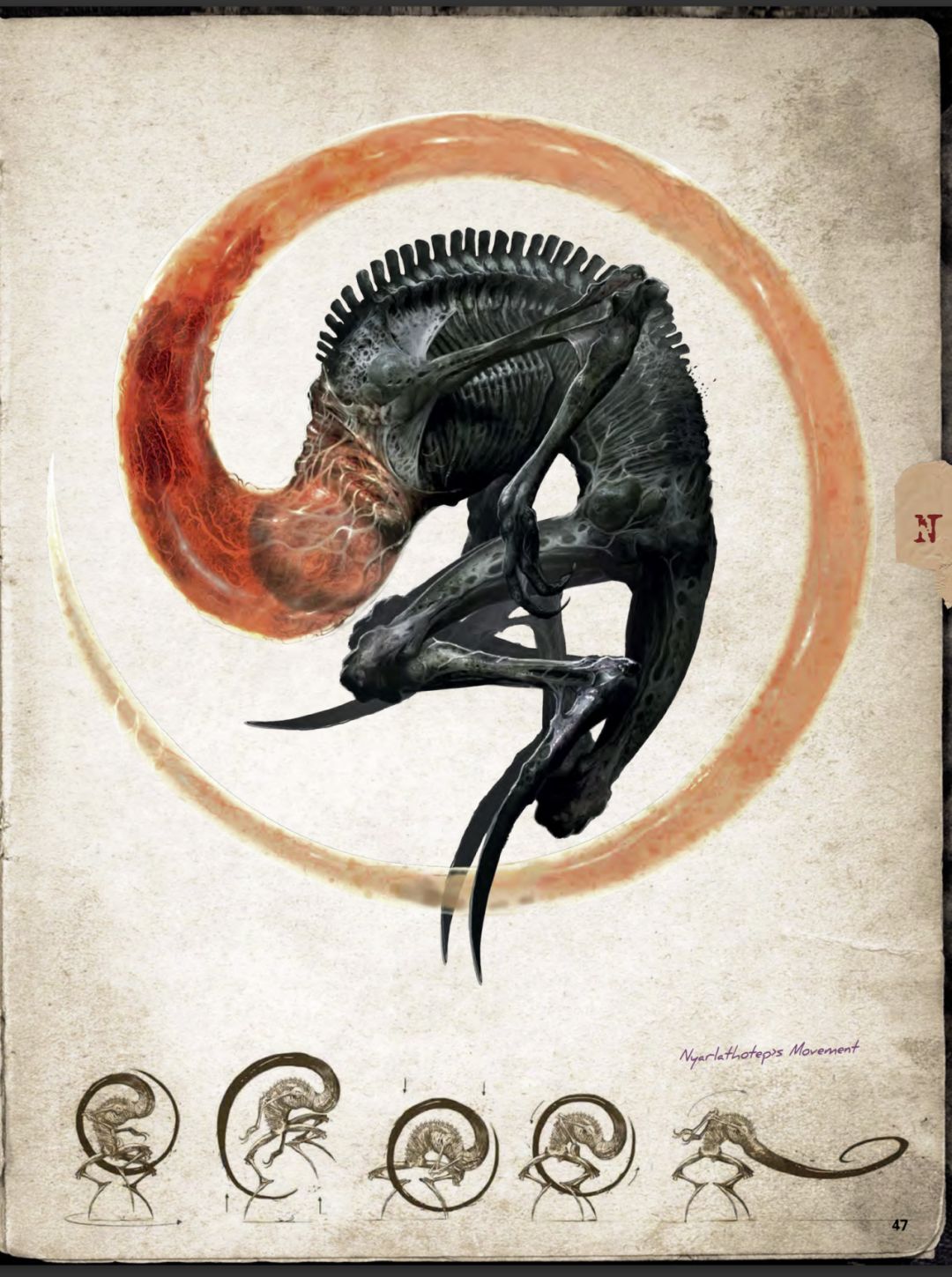 習性:奈亞拉託提普會竭力執行外神的意志,當需要純粹的力量時,它會借用外神的力量。