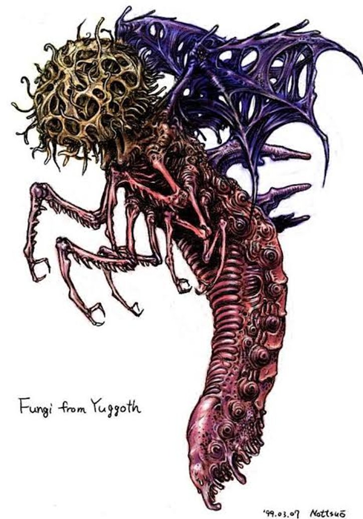 ● 猶格斯真菌(Fungi from Yuggoth)是粉紅色的,有六個可進行操作的肢體,它在大氣中飛行時十分笨拙,不像拜亞基一樣敏捷。