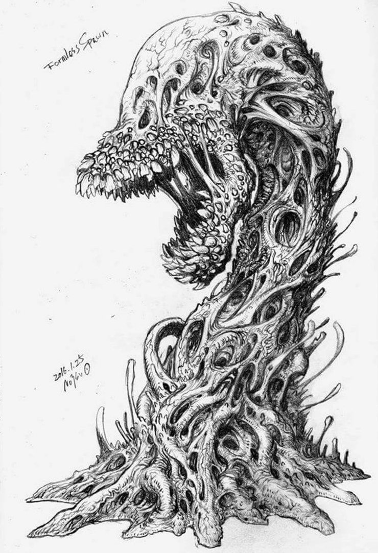 ● 空鬼(Dimensional Shambler)外形上不同,擁有更長的手臂和鬆弛褶皺的皮膚。