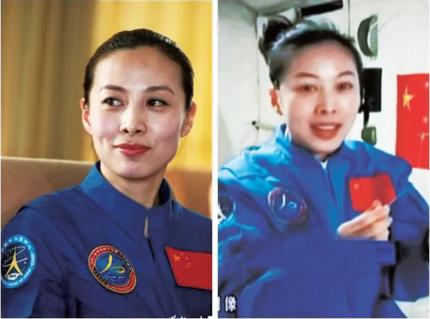 我國宇航員王亞平的臉部變化: