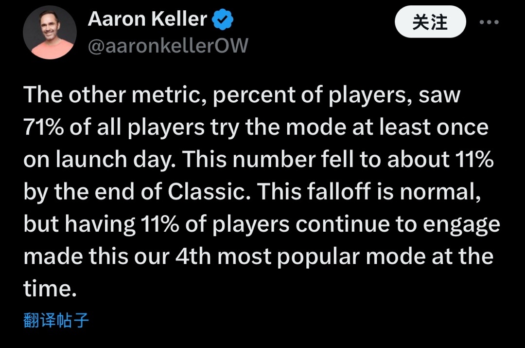 近日,《守望先锋2》游戏总监Aaron Keller发布推文,公布了大量活动数据: