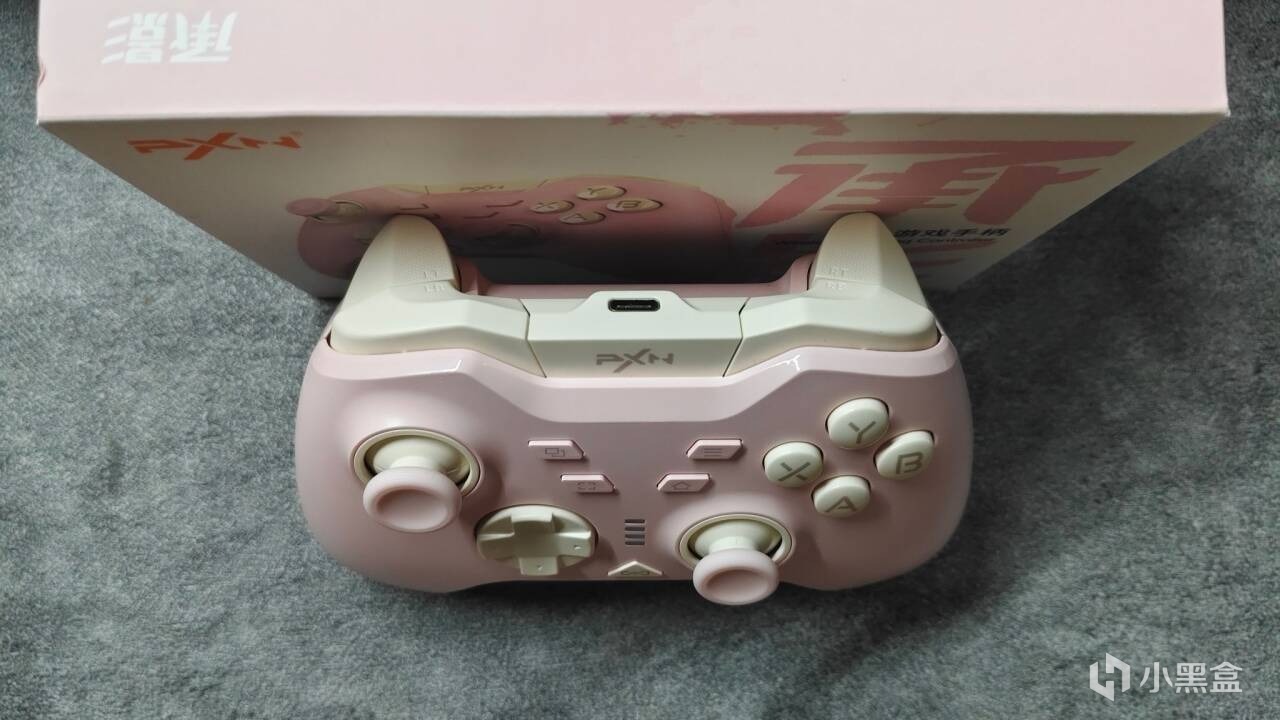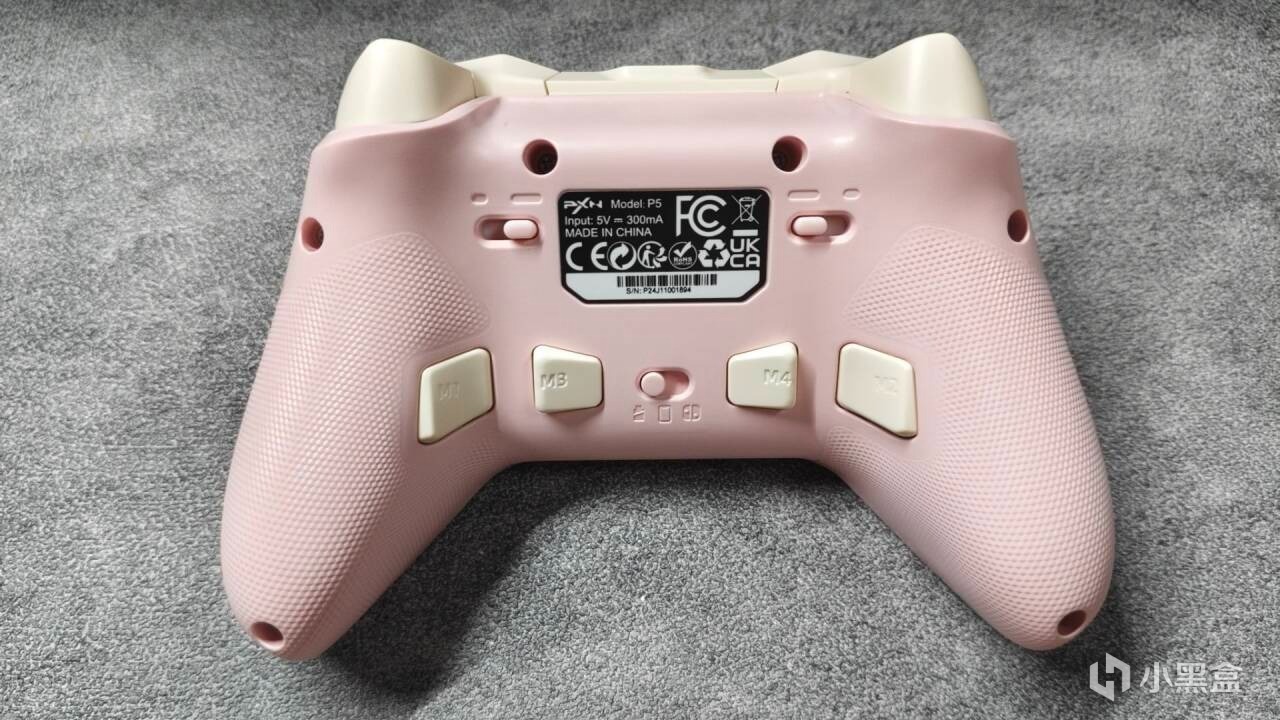 手柄握把部分採用了符合人體工程學的設計,並使用防滑紋理處理,手感更加穩固舒適。手柄中下位置的多模切換開關,方便玩家在支持在接收器、藍牙、手機及NS等多種模式之間快速切換。