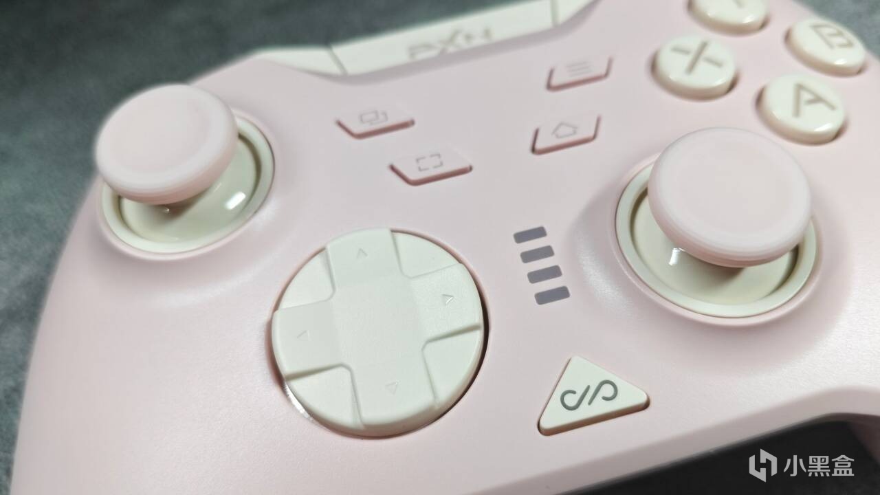 手柄的正面按鍵佈局繼承了經典的Xbox設計,配備了導電膠材質的ABXY按鍵,按壓回彈迅速,手感厚實,聲音更輕。十字鍵採用鍋仔片與硅膠墊組合的圓盤設計,按壓手感較硬,以儘可能減少誤觸。