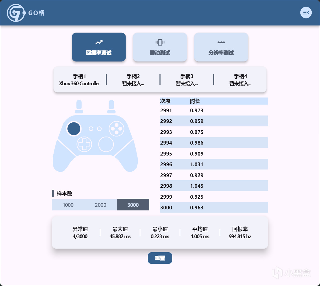 有線模式下,搖桿回報率也是一千左右浮動,可見沒有虛標。