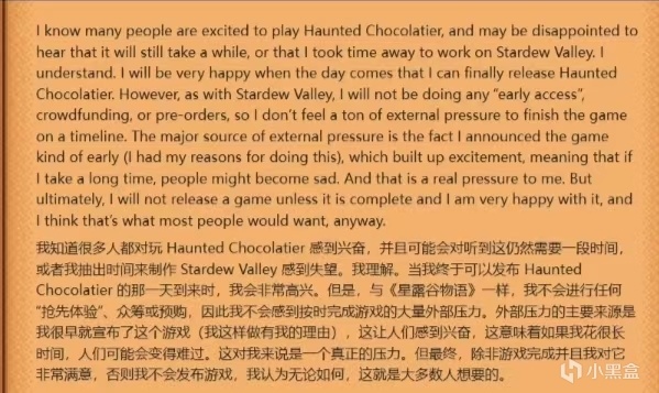 作者目前表示雖然他忙着開發《星露穀物語》1.6版本,但是已經在《鬧鬼的巧克力店》上做了很多工作了,他目前很有創作激情。