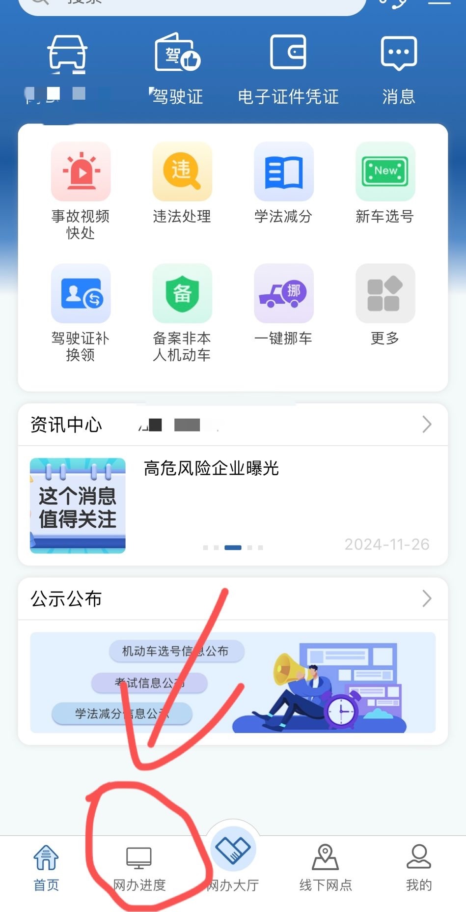 所有的处理进度都在,主页最下面第二个“网办进度“