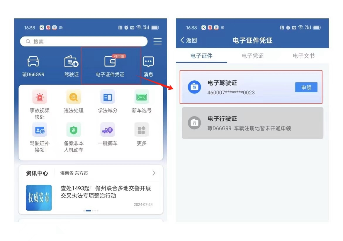 2.驾驶证状态为撤销、吊销、注销时,不能申领电子驾驶证,已申领的不再显示;