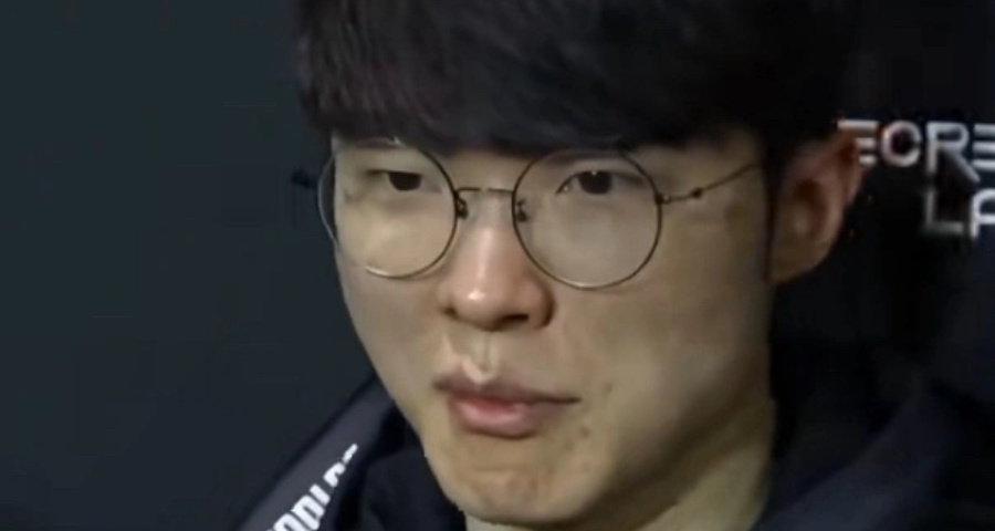 這是在S13世界賽的時候,T1打贏LNG後,導播切到faker的視角時,這憋笑的表情就被捕作到了。