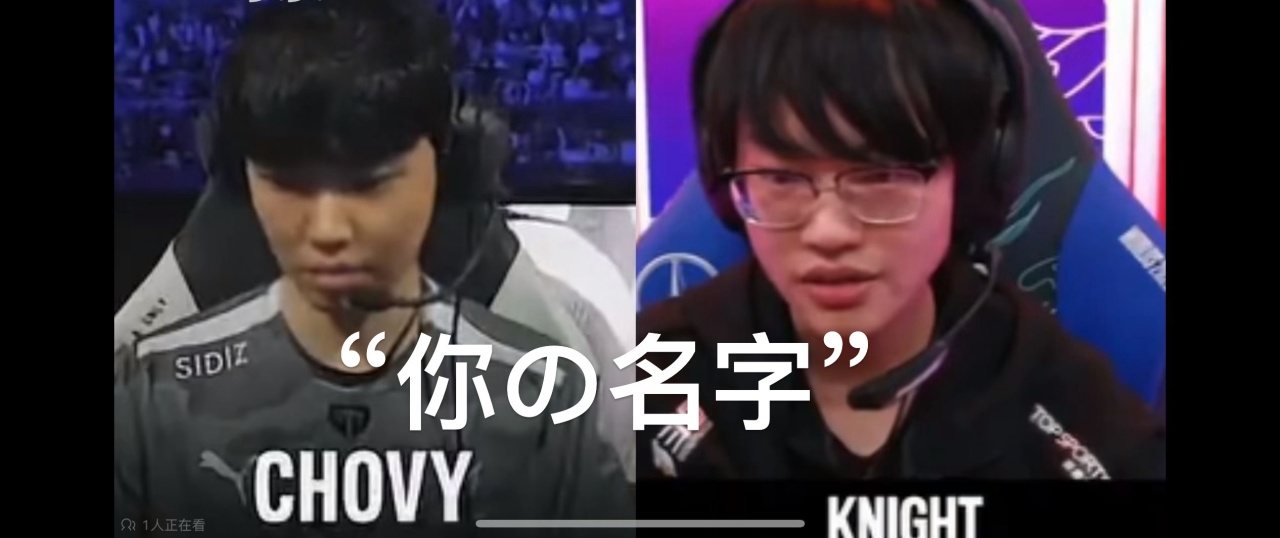 knight(左手)和Chovy(超威,右手),因爲兩位中單在賽場上的表現非常相似,像是平行時空的另一個自己。(可惜超威沒進決賽,要不又對上了)
