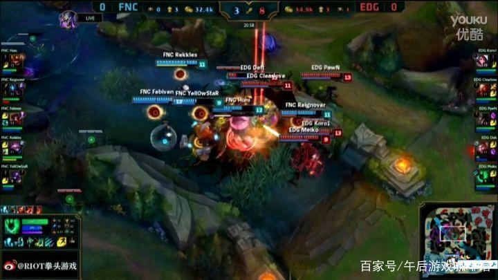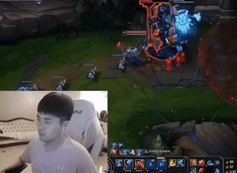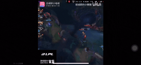 這是s14八強賽中,FLY vs GEN 第三局,上單螃蟹用E技能背EZ用E時發生了一個小bug,把EZ舉的很高。