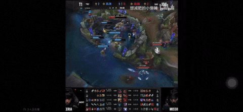 這是S14賽上瑞士輪BO3,G2 vs T1 第二局,因爲G2打野夢魘開大,沒有視野,T1上單和輔助就看向了隊友的屏幕。