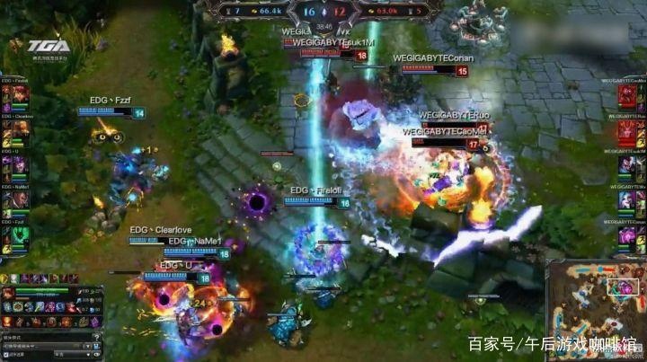 這一幕是wbg和lng八強賽最後一局,在一波團戰裏,lng掉了三位英雄,wbg教練丹尼以爲已經獲勝,但永恩和鱷魚在F6野區斬獲三人,使局勢發生逆轉,剛好這一幕被導播拍到,形成這一名場面。