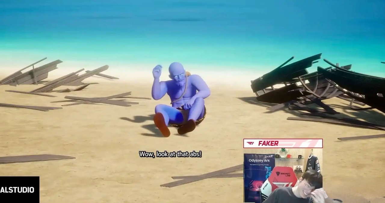 這是faker在和隊友主播時,好像是全員在玩幻獸帕魯,其他人都捏的是美女,就faker捏的瑞茲。相赫真是個無趣的孩子啊。嘿嘿嘿
