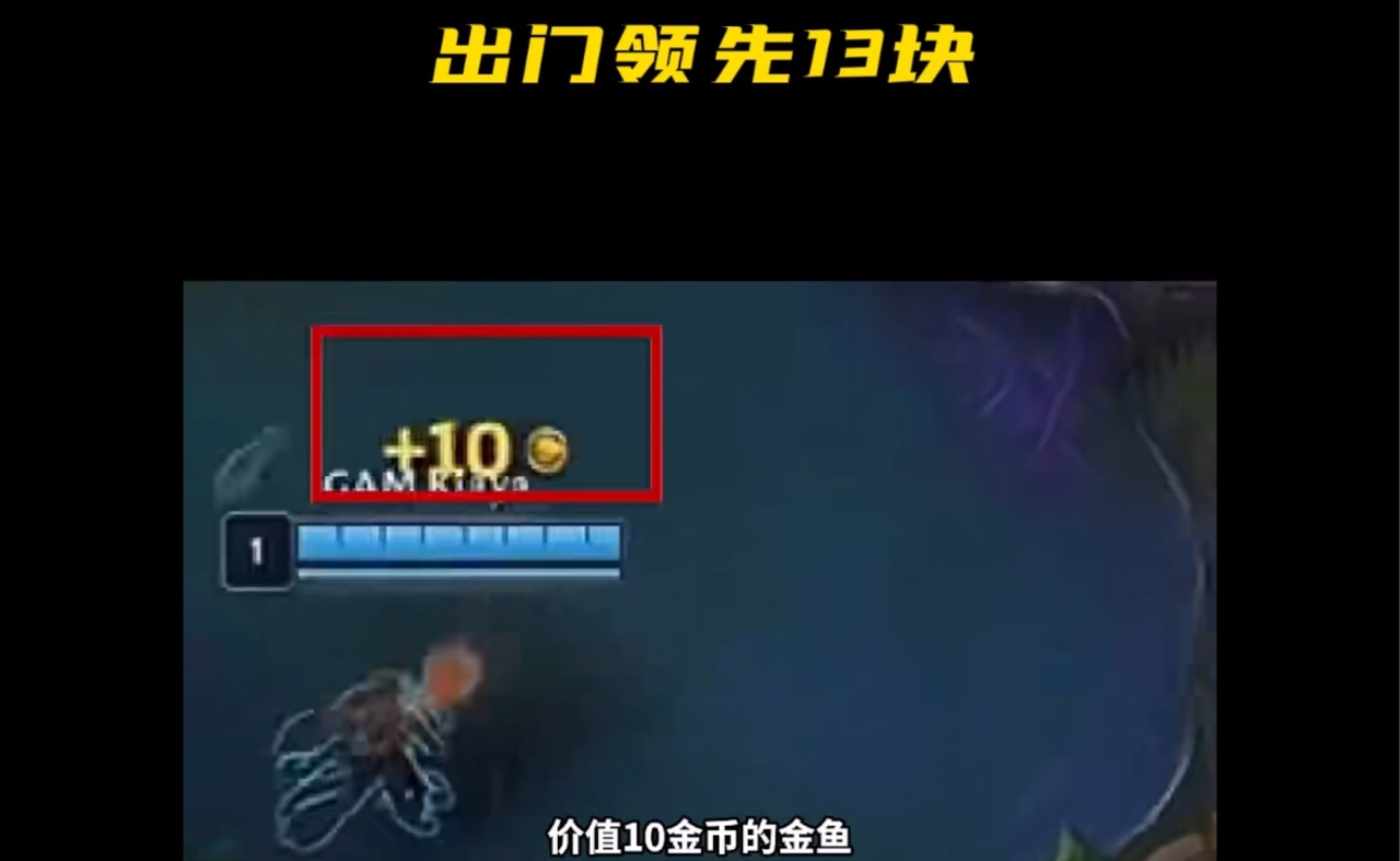 這是S14全球總決賽瑞士輪最後一輪,GAM vs TL第三局,GAM上單使用武器的皮膚釣魚宗師,這個皮膚有個彩蛋(站在河道8秒鐘,可以進行釣魚,獲得金幣)然後武器在河道釣到了13塊錢,隨後解說米勒說:“開局領先13塊錢怎麼玩?”。