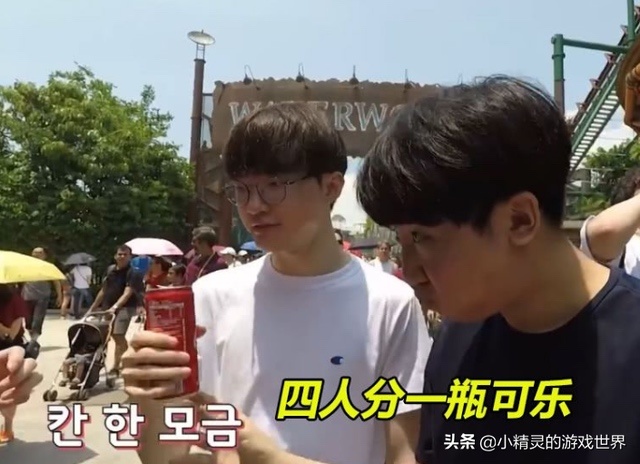 這是S9小組賽後,SKT四個隊員在外面旅遊,因天氣炎熱,faker居然主動提出要請大家喝可樂,最後隊友沒想到是一瓶可樂四個人分。
