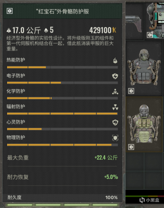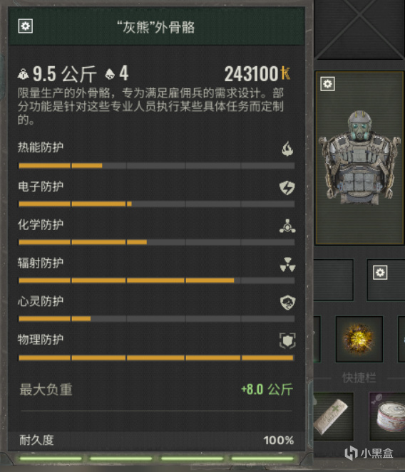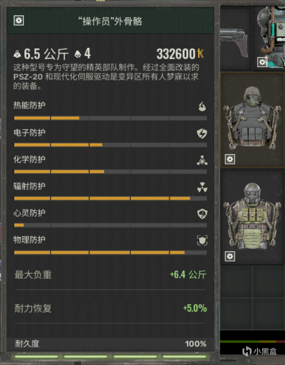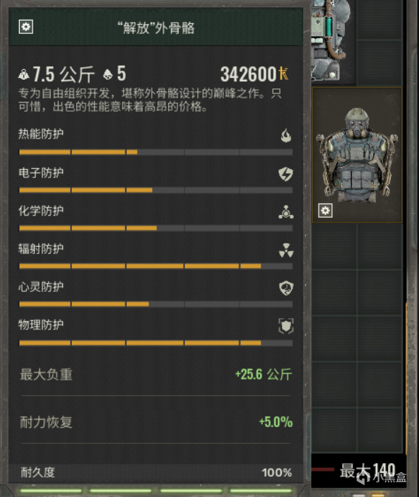 上邊基本上就是外骨骼之下最好的護甲,甚至和外骨骼扳手腕我覺得也沒問題。
