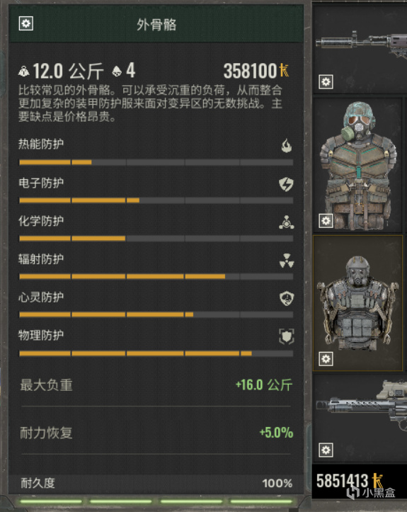 接下來是外骨骼推薦(具體收集方法大家看b站吧,基本上都是大後期才能入手):