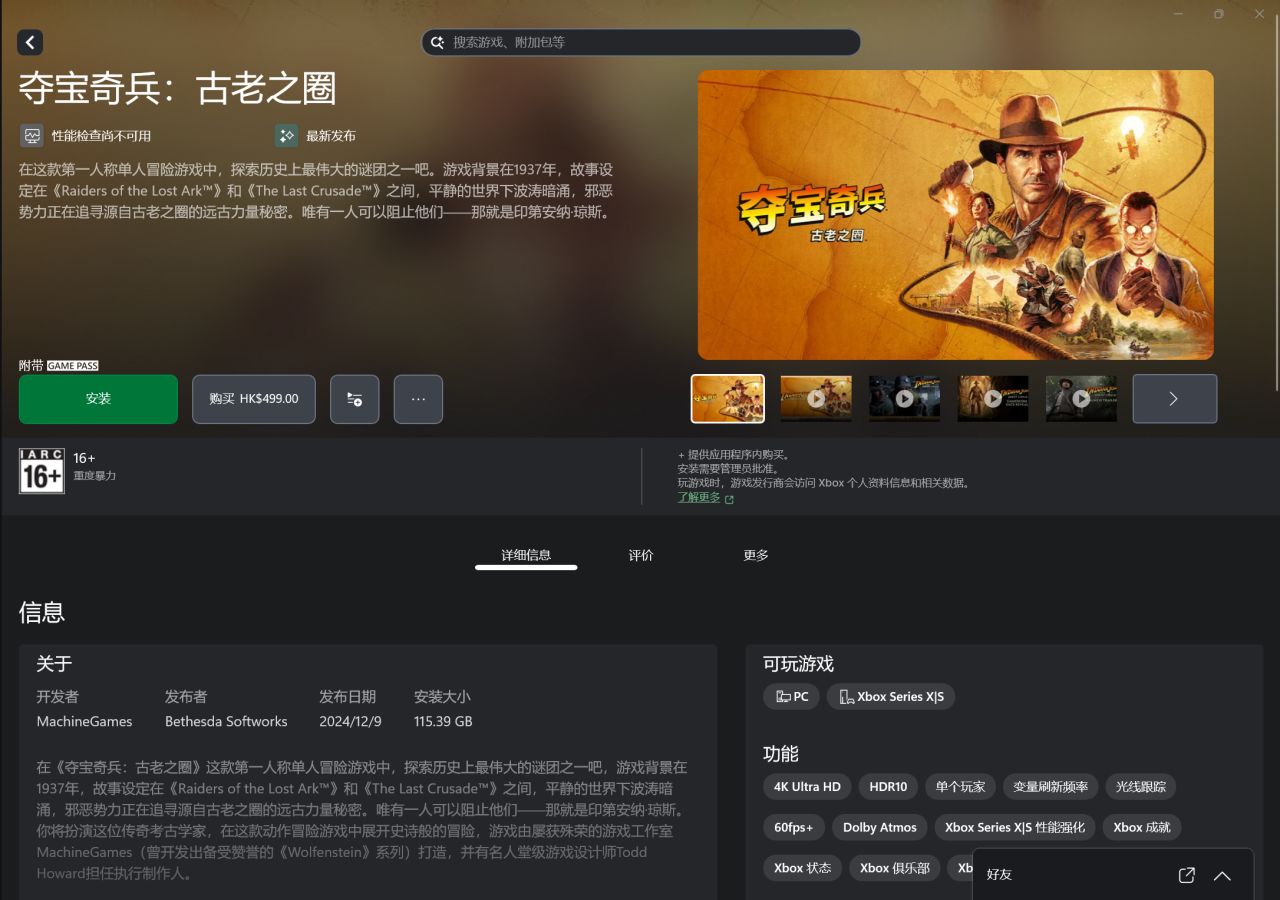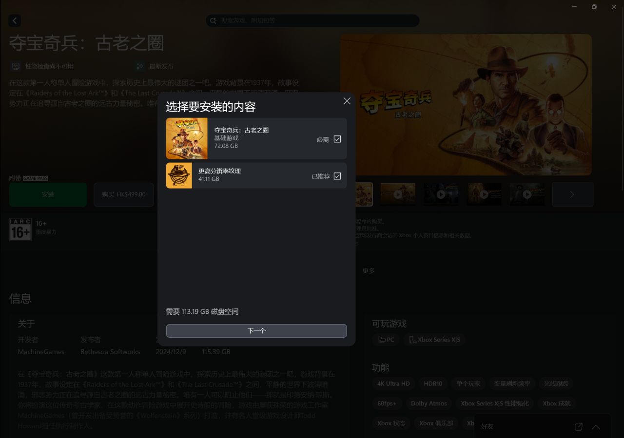 大家早上好,今天早上8點的時候,《奪寶奇兵:古老之圈》已正式解禁開放下載遊玩了,當然了,微軟已經將XBOX的啓動畫面換成了《奪寶奇兵:古老之圈》風格的動畫,大小爲113.19GB(包含71.08G的基礎遊戲與41.11G的更高分辨率紋理),可以根據自己的配置自行選擇加不加更高分辨率紋理。