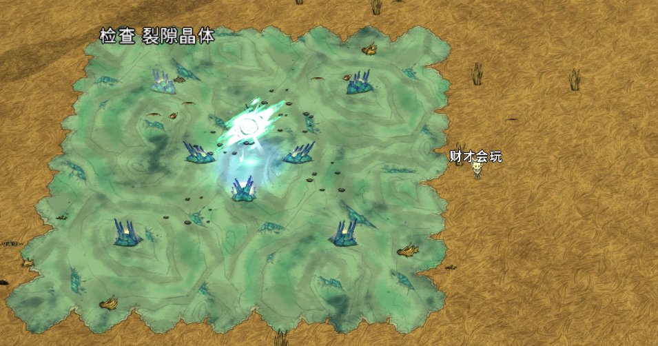 裂隙晶體,最好用多用斧鎬開採(用普通稿子開採時會被彈開),會掉落1~2個純粹輝煌,每0.75~1.25天,裂隙晶體都會重新生成一波,每波至多生成4個。