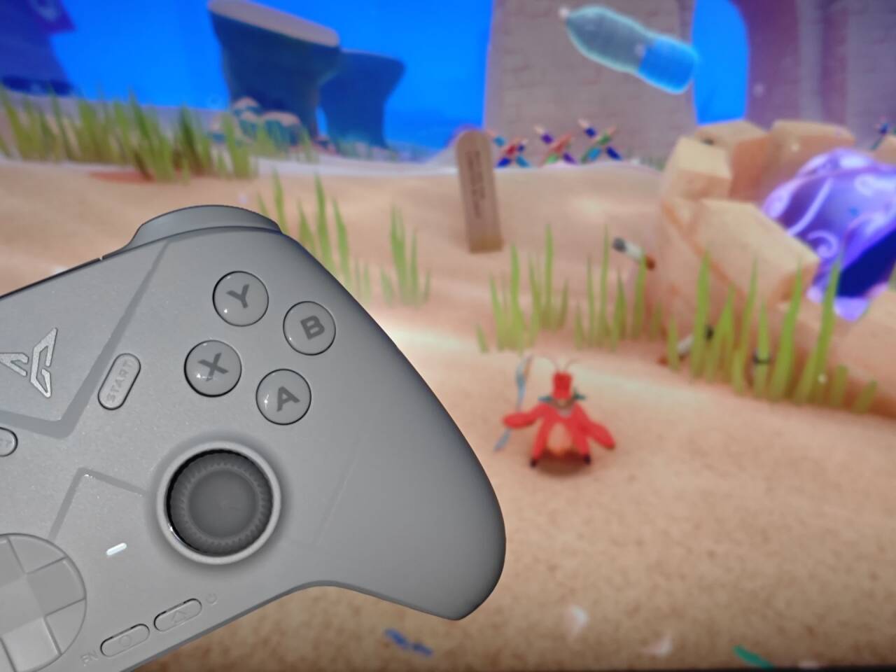 大家電腦上有下載飛智空間站的話建議先升級到最新版本,不然狼3會被識別成狼2,不然更改鍵位的話就會出錯!狼3和狼2的模型是沒有改動的,所以在握感上其實變化不大,手柄整體重量適中,搖桿因爲換成了飛智原創的槓桿式,搖桿回中更顯得有彈性,遊戲體驗方面我選的是《蟹蟹尋寶奇遇》,像破壞場景中的玻璃瓶,長久不動蟹蟹玩海藻掉落時等各種場景下的震動效果做的還是很不錯的,這個八向十字鍵更適合玩格鬥遊戲,1000Hz的無線回報率也讓手柄不挑遊戲~