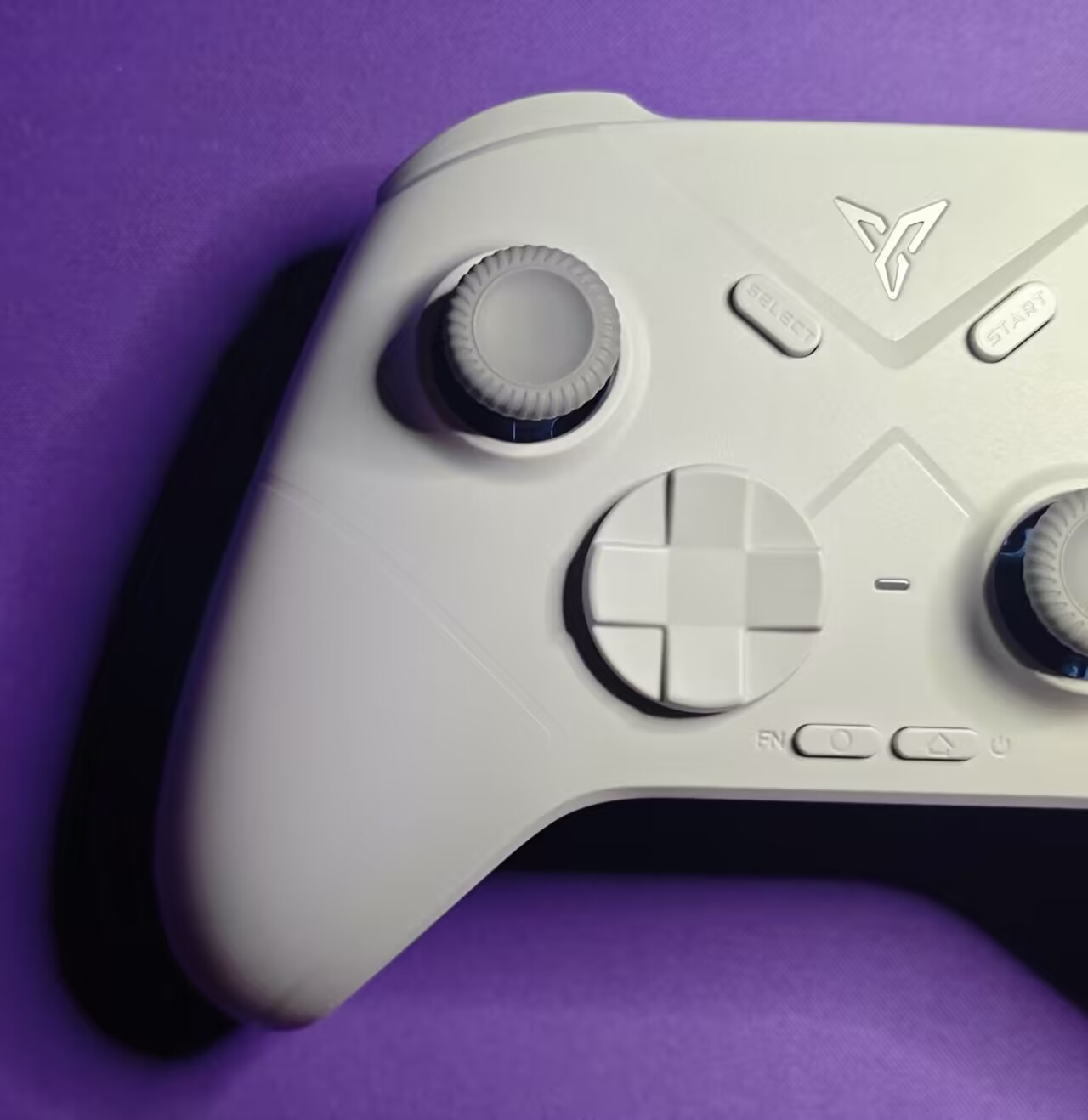 最值得吹捧的還得是飛智自研的轉軸十字鍵,這個可以說是飛智的手柄標配了(除了飛智新出的入門手柄沙漠狐沒給到),一般的十字鍵只能做到上下左右四個方向,而且按壓時體驗十分的僵硬,但是這個轉軸十字鍵可以做到八個方向,按壓轉向體驗更順滑。