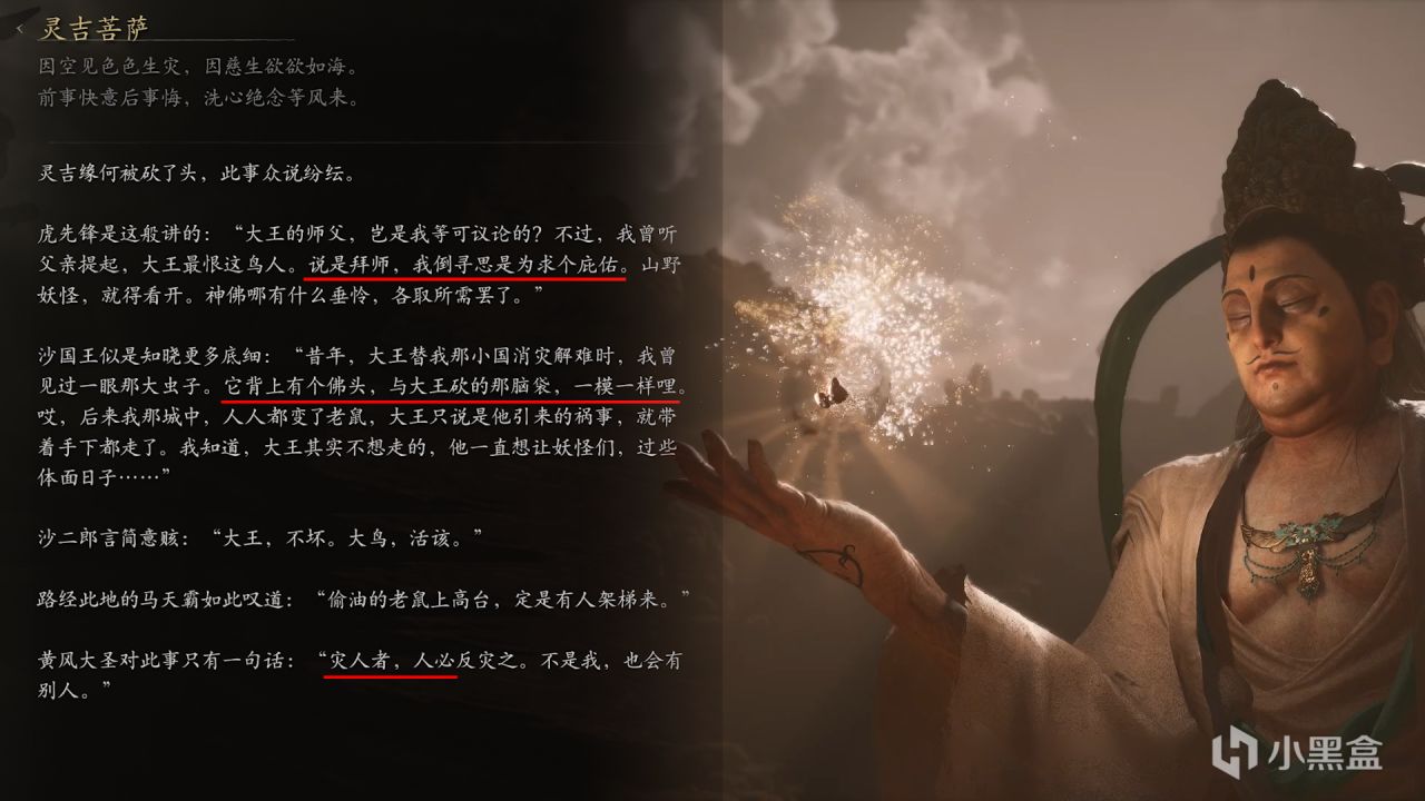 天命人尋到此處,失去頭顱的靈吉菩薩化爲無頭僧,一路引導協助,終是找到了這叛逆的徒兒,可如今的他竟已變得有幾分癲狂。最後靈吉菩薩尋回了頭,天命人也得到了大聖的第二根。