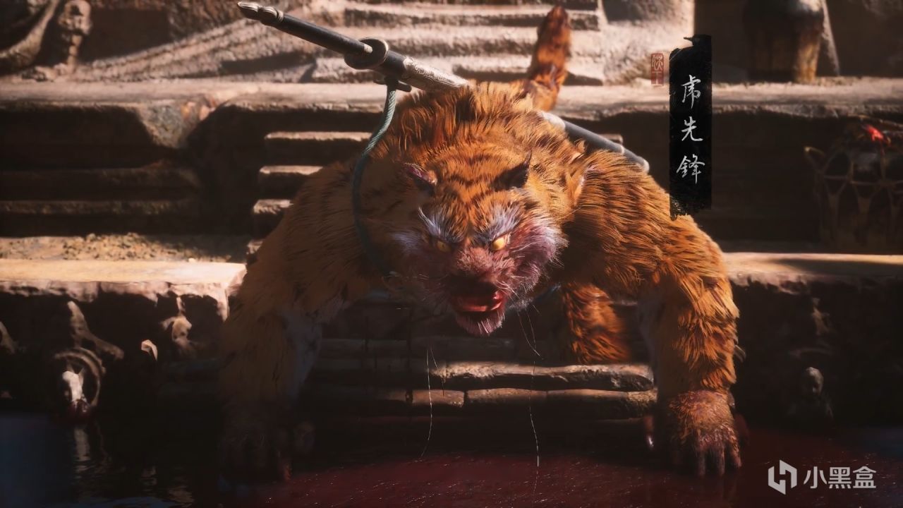 前方守門的又是一隻“虎先鋒”,這隻正是臥虎寺中虎先鋒的父親,也就是取經時捉了唐僧,死於八戒耙下的那位。此刻正爲黃風大聖鎮守山門,見天命人身手不凡,出言邀請我助他大王一起降妖。