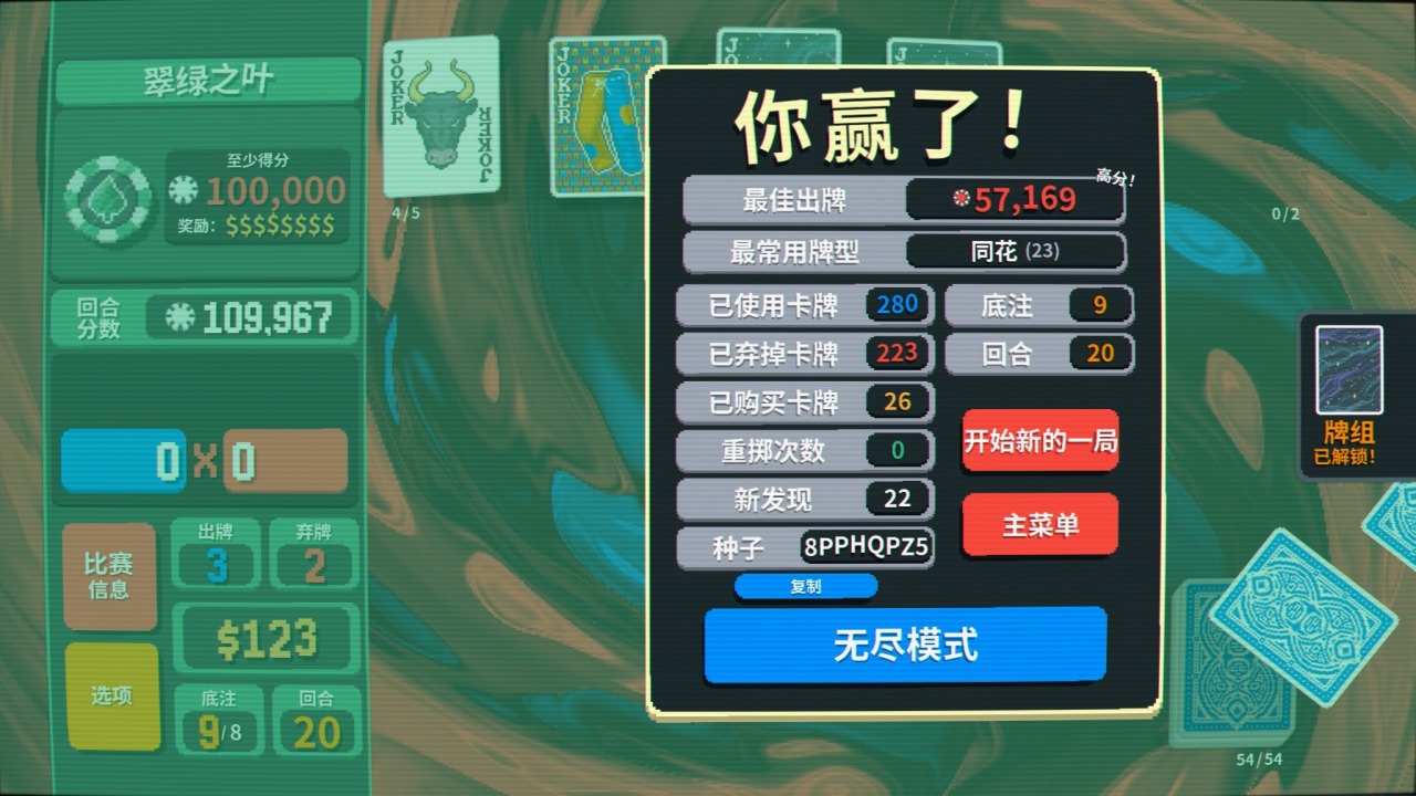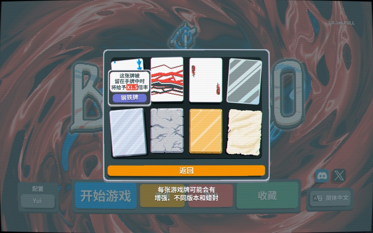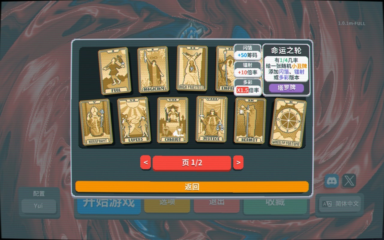 而在牌面的設計上則傾注了大量心血,每張小丑牌都有自己的特色,極具辨識度的同時爲玩家熟悉構築打下基礎,總共150種牌面也讓遊戲視效更加飽滿。總而言之,本作「簡約而不簡陋」的畫風,再加上魔性洗腦的背景音樂,讓遊戲在技術規格方面不至於成爲短板——看看《幸運房東》吧,一個因爲畫面過於勸退而使明珠蒙塵的典型例子。