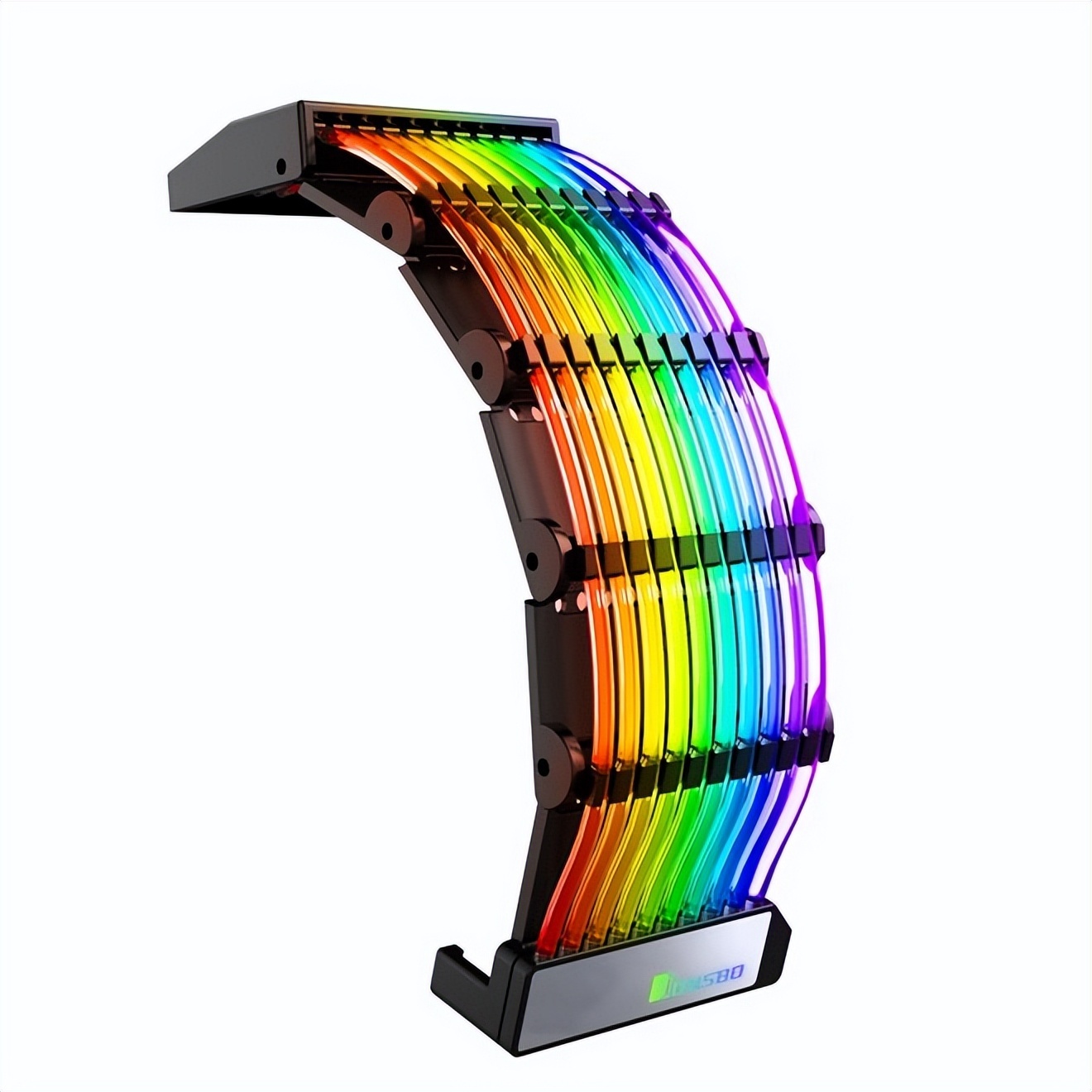 這次還選了個小配件,用來給主板24pin供電線裝RGB燈光裝置的幻綵線,200mm長的優質導光條,背面是多個可活動關節的結構,實現很大角度的彎曲,來適配各種機箱尺寸。