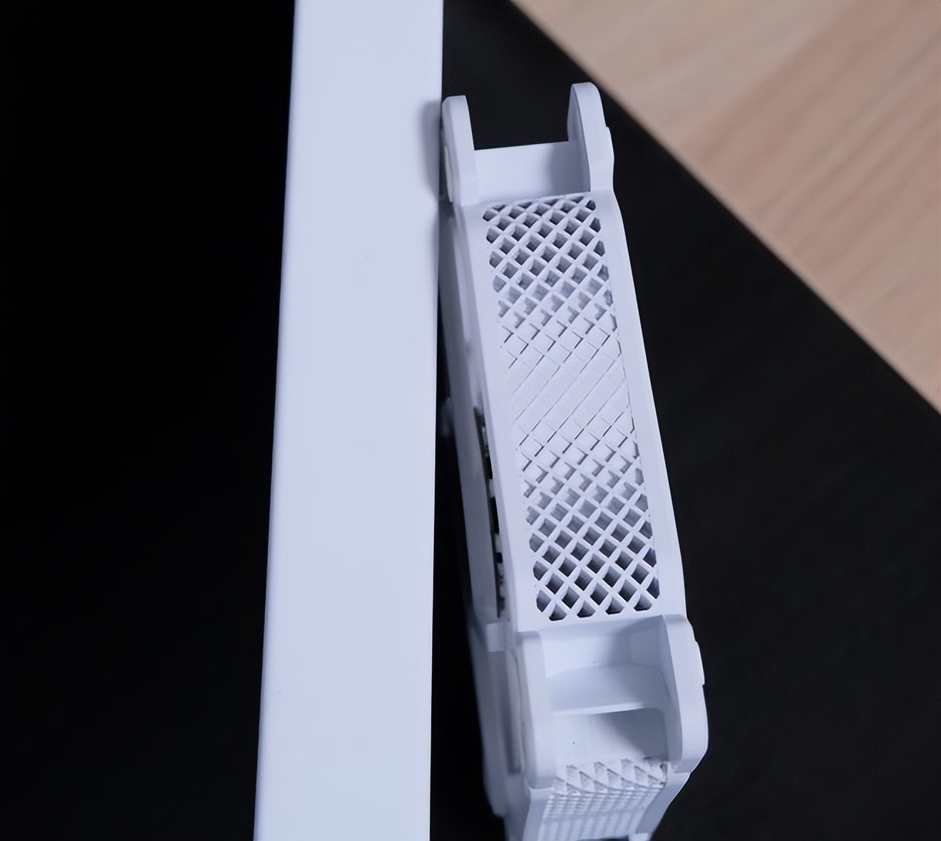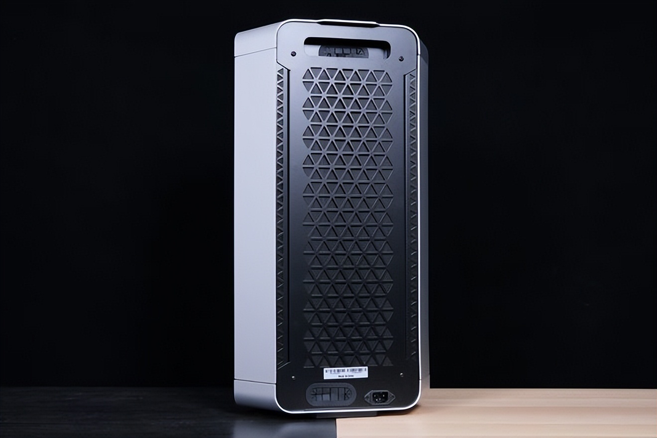 機箱頂部佈滿了三角形的開孔結構,與機箱整體相互呼應。極簡的保留一個開機按鍵,3個最常用的接口,大角度的邊緣彎折處理,將三角形輪廓變得更加柔和。