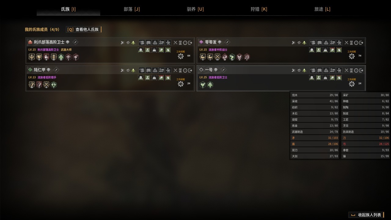 还有就是族人的职业,护卫、猎手、匠人、战士都有不同武器的熟练度的辅助提升。
