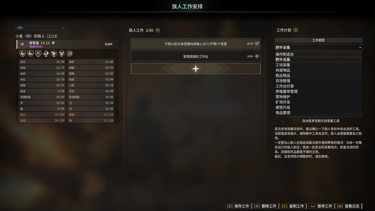 是的,这个游戏也有分工这种玩法,我们只要在“族人工作”页面,按照工作类型、工作地点,指定工作内容即可。特别是工作台制作物品的任务,我们可以设置成循环模式,按照一定的时间间隔错峰制作不同的物品。这样即使我们去很遥远的地方探险,也不用担心家里面材料、半成品不够用的情况。