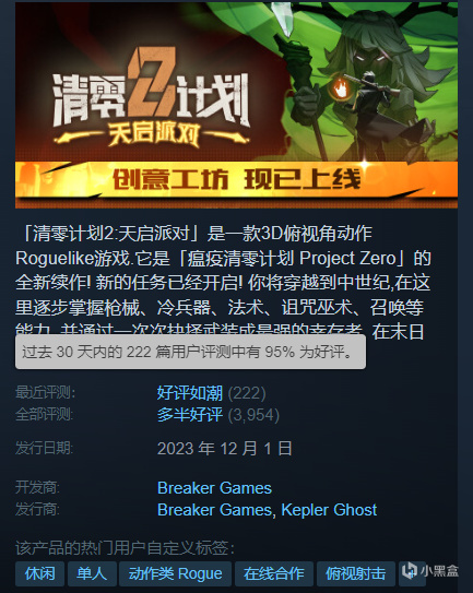 另外,感謝各位玩家在前段時間Steam評選活動的支持,讓我們收穫了200+評論,95%的好評,達成了近期“好評如潮”的評價!(太感動了)