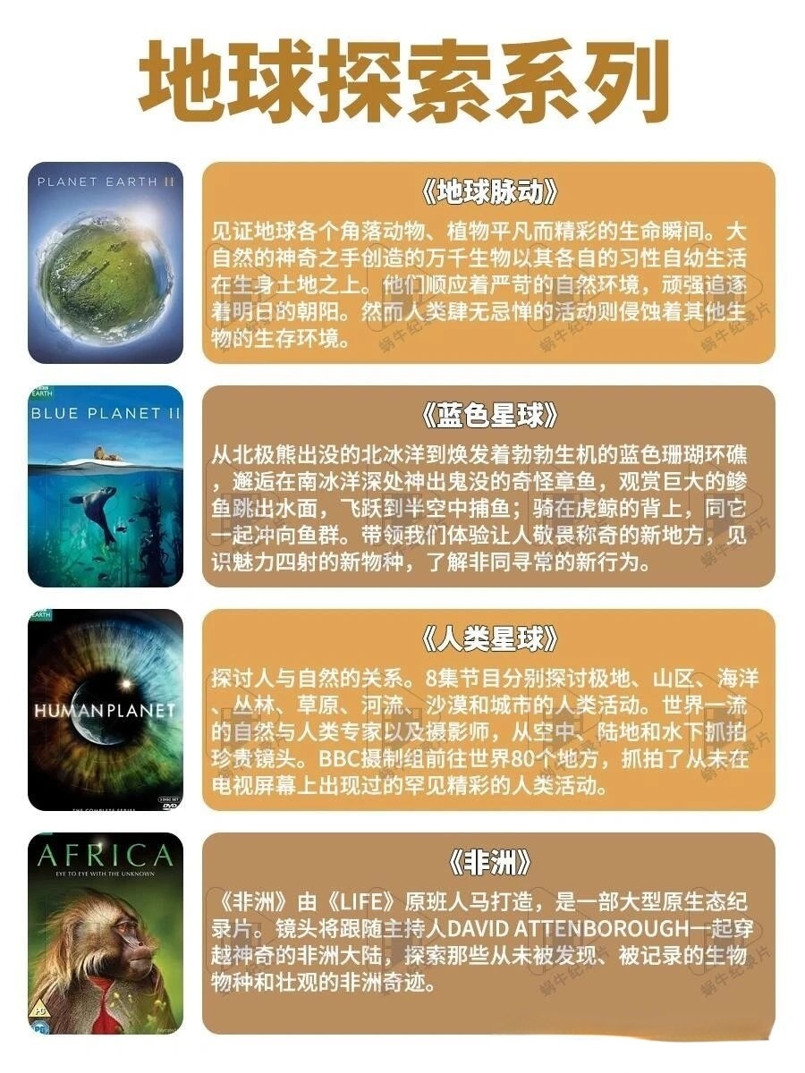 重點🏁推薦藍色星球和地球脈動,lz比較喜歡自然環境還有動植物,從小時候科教頻道里人與自然還有動物世界,開始喜歡看這種紀錄片,BBC拍攝的紀錄片真的展示出真正的大自然的景觀,喜歡看紀錄片的一定不要錯過
