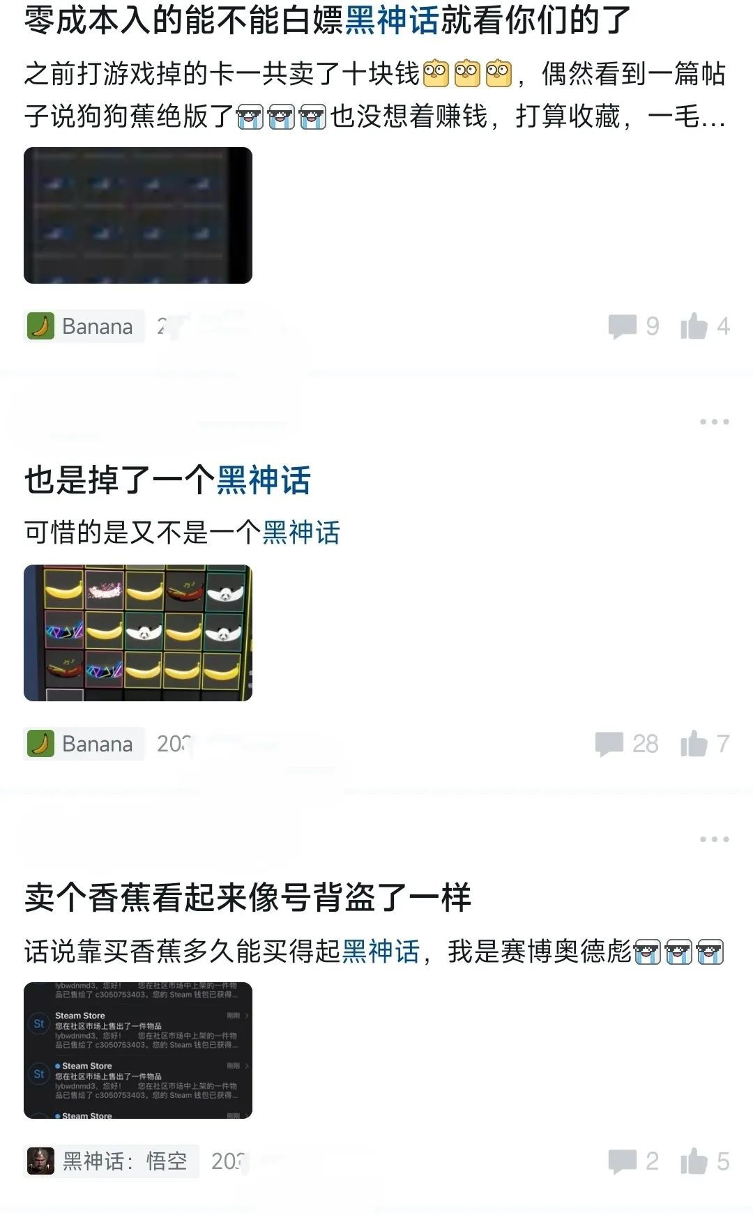 於是,一大批帖子在社區上火熱起來,賽博香蕉似乎成爲了《黑神話》的指定貨幣。