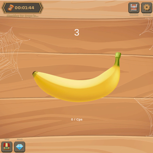 是的,就是一個香蕉,這就是整個遊戲的全部。而這裏唯一的互動性就是點擊這個香蕉,讓香蕉頭上的白色數字不斷+1。