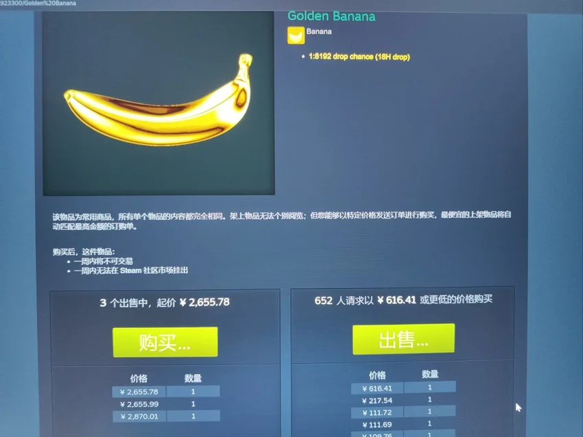 香蕉市場也在這一刻徹底變了味道,然後便是遊戲外的投資者加入這場戰局!他們不懂什麼叫做steam,什麼叫做遊戲。只堅信大力出奇跡,直接真金白銀充到steam當中,然後進入香蕉市場進行廝殺!