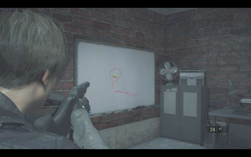 (三)钥匙卡 位置在警察局东侧二楼美术室建议在扣押物品保管室里获取霰弹枪后再去西侧二楼打舔食者