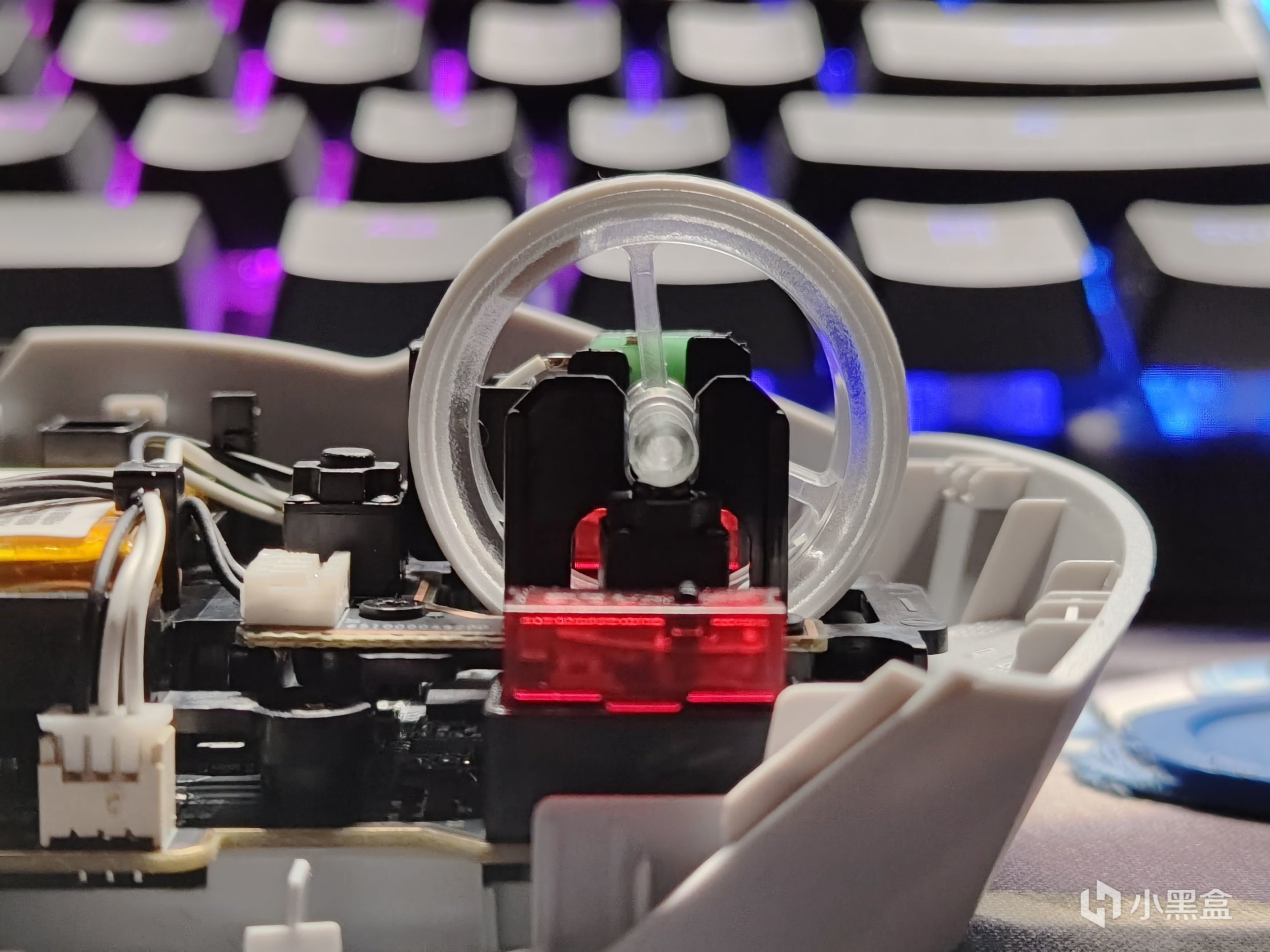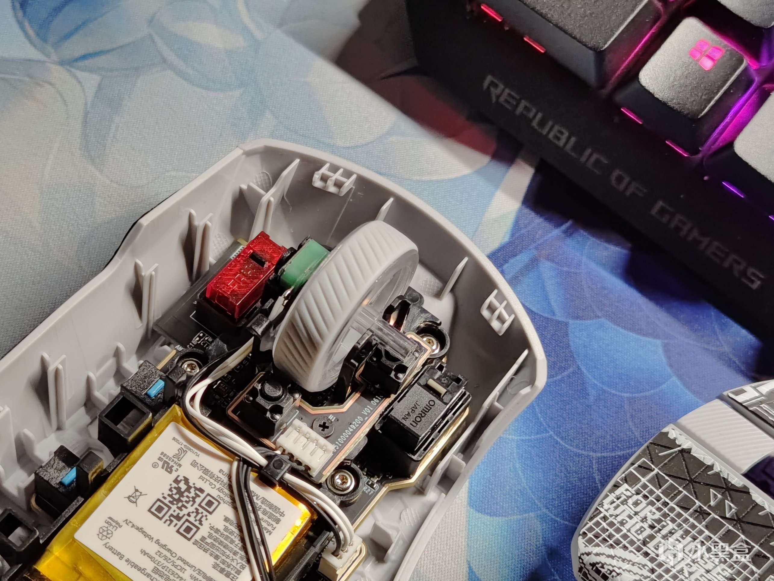 左右键的微动还是熟悉的ROG自研的透明红色光学微动,声音还是熟悉的清脆,回弹舒服。