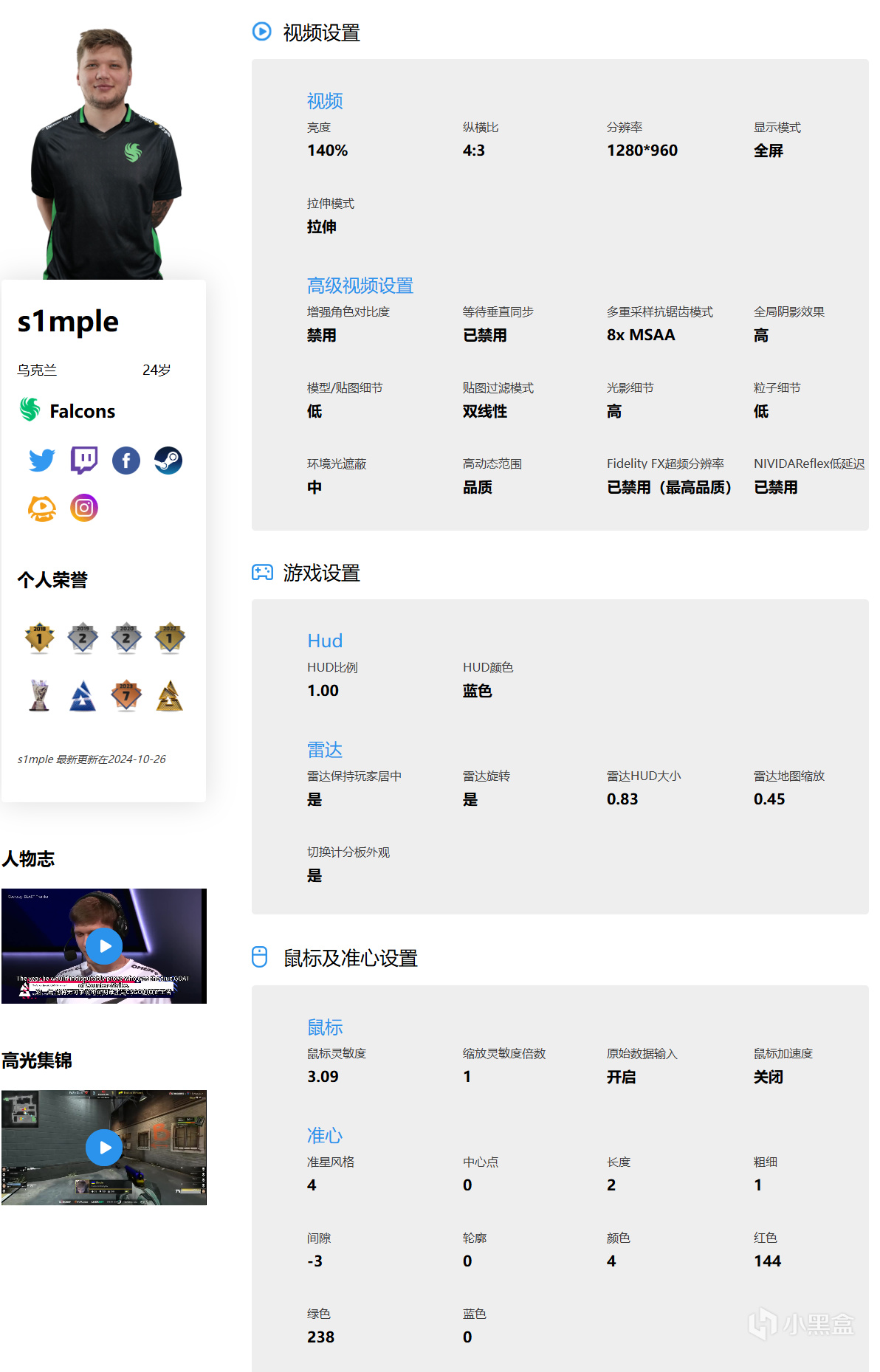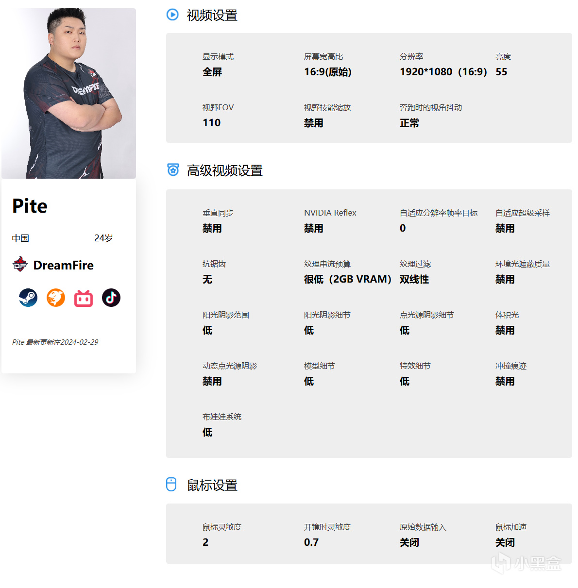 這裏我們就要用到FIREOPEN這個網站了,這個網站裏面包含了很多選手的參數以及使用的外設。這裏我簡單的舉例幾個