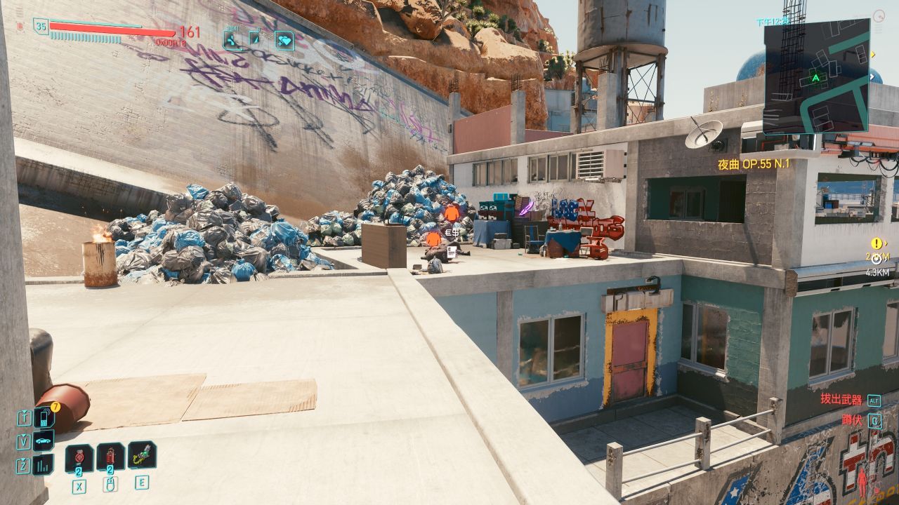 沿着台阶一直上去,在一处垃圾堆我们可以发现有两位警员躺在地上休息。