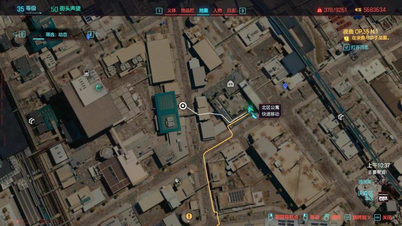 我们从沃森区北区的公寓传送点过来,沿着白色坐标找到这座蓝色的建筑。