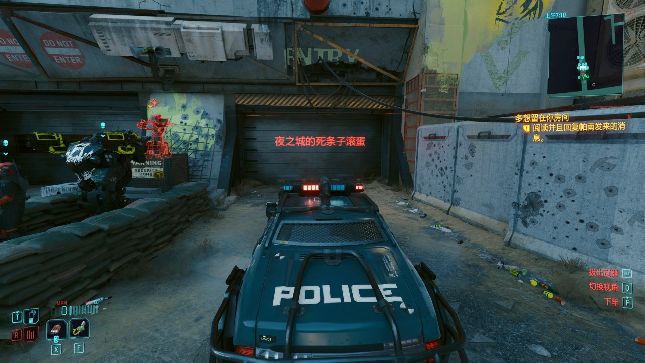 当你驾驶一辆NCPD的警车前往狗镇大门时会看到下面提示。