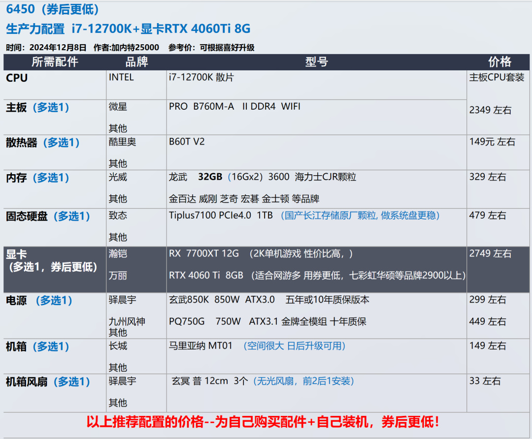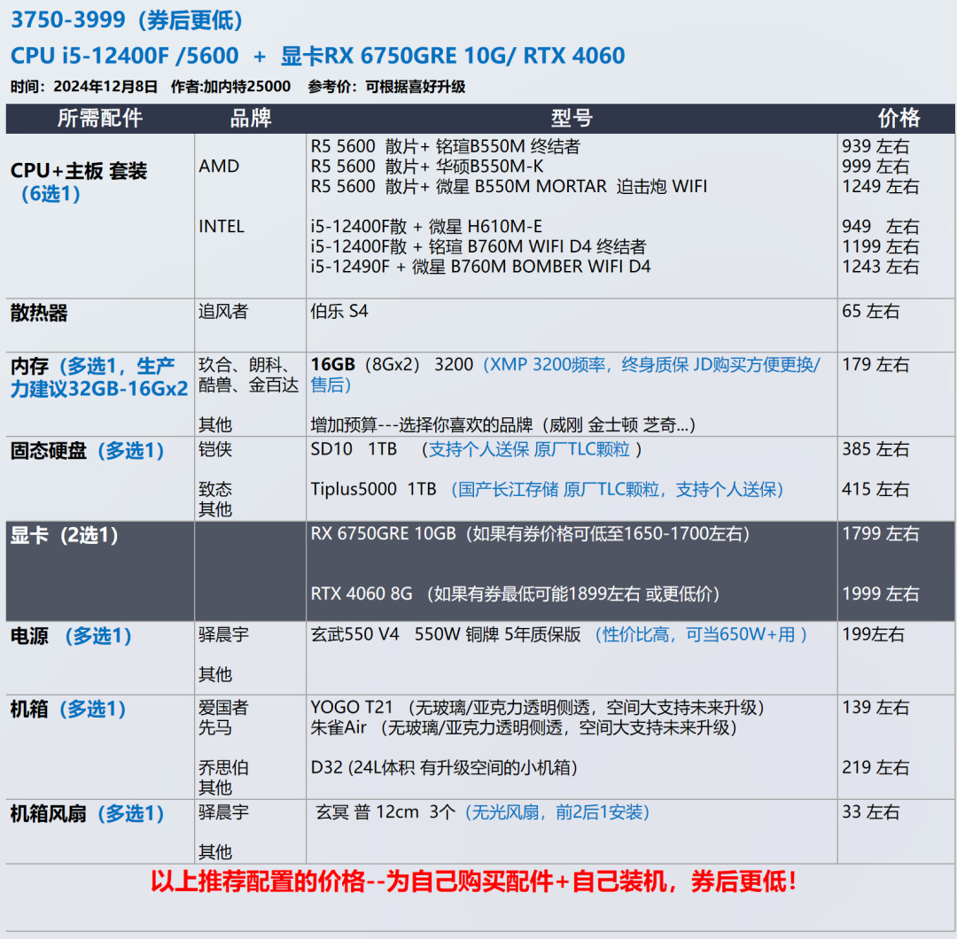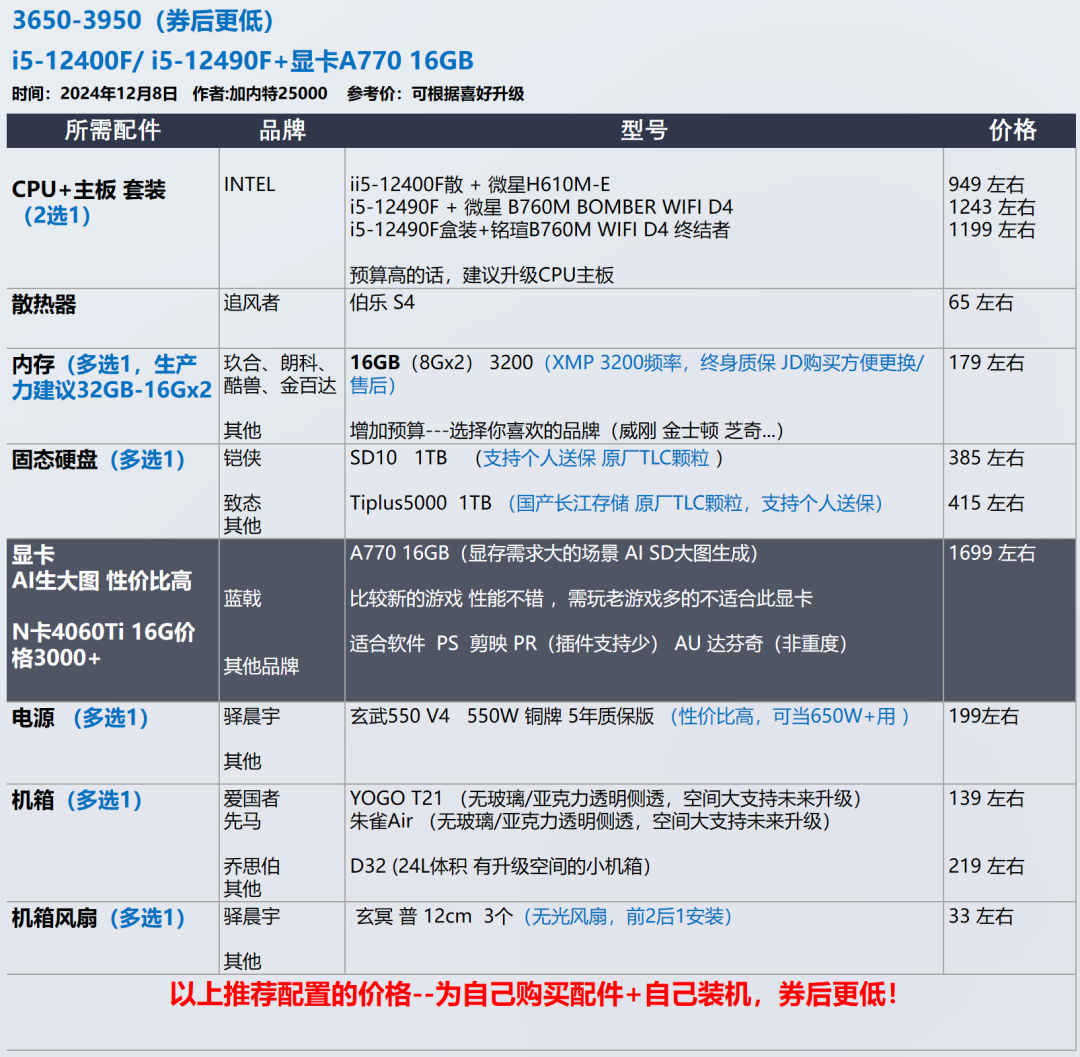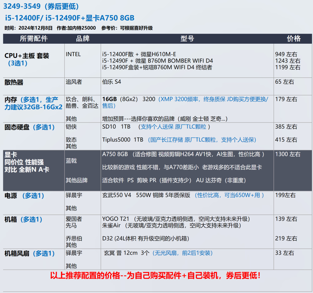 簡單推薦了2套配置,如果有核顯需求可以將CPU換成i5-12400