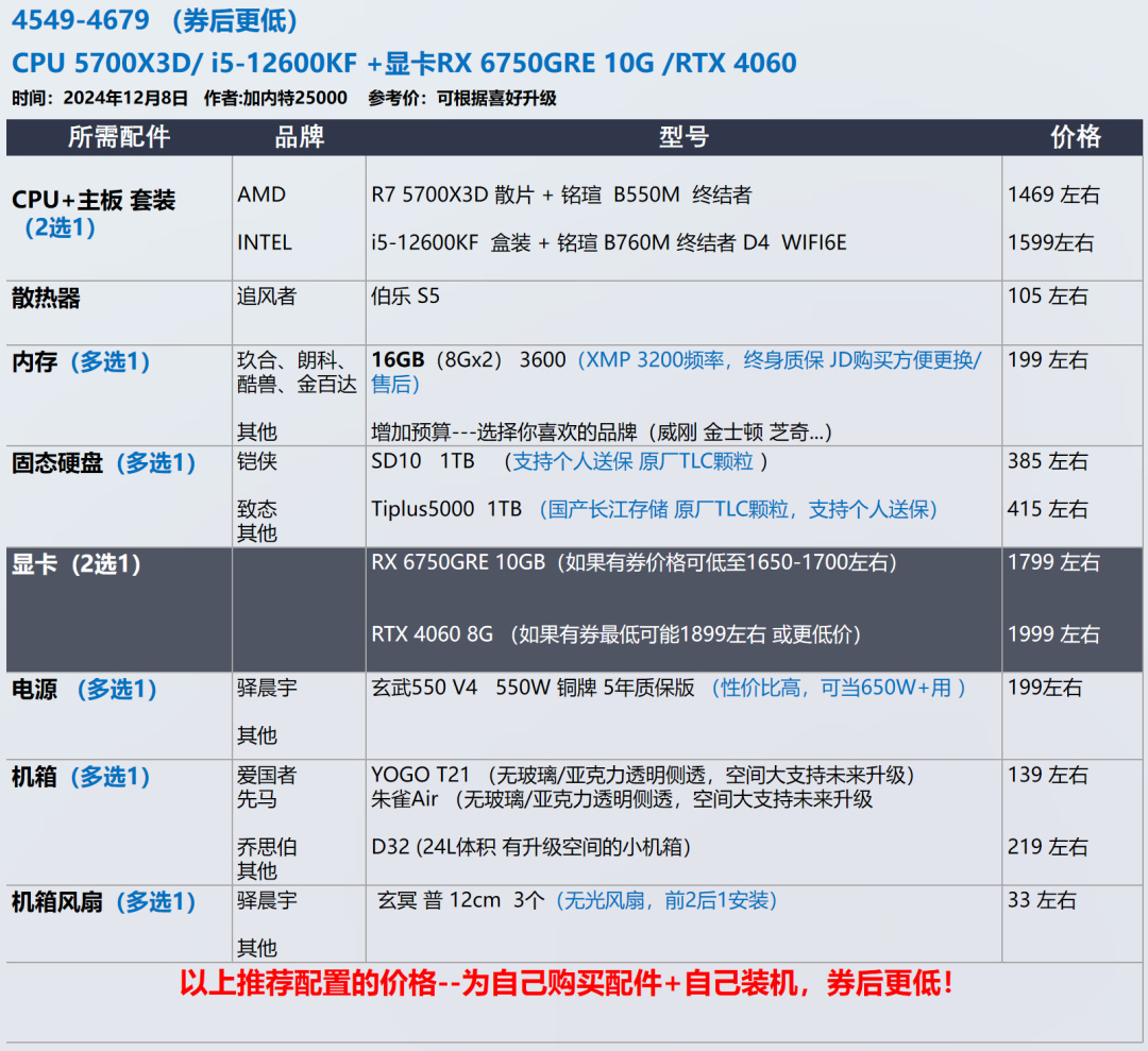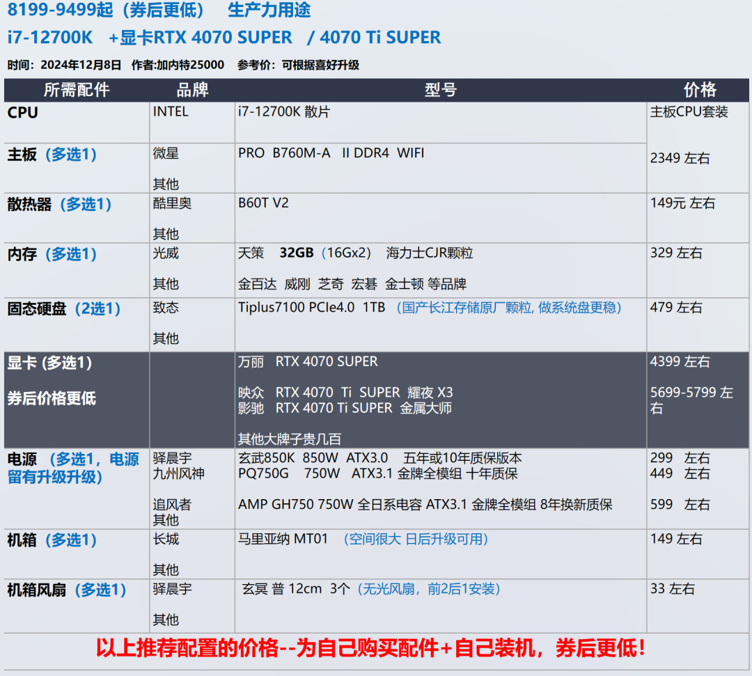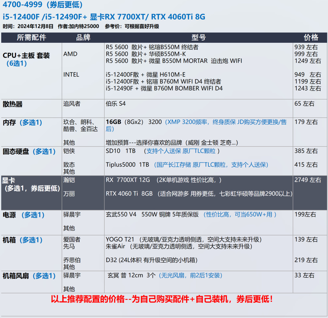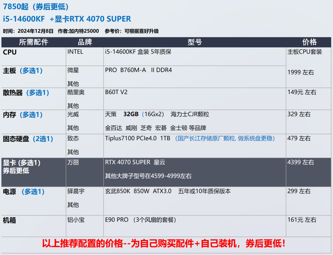 簡單推薦了2套配置,如果有核顯需求可以將CPU換成i5-12400